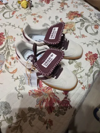 Zapatillas Adidas modelo Samba de la colaboración con Wales Bonner. Un diseño único con detalles distintivos. - Color beige con detalles en marrón. - Cierre de cordones. - negociable sin caja