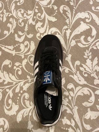 Zapatillas Adidas Samba en tonos negros y blancos. -Talla 39 - Diseño clásico. - Detalle de las tres franjas. - Logo de Adidas en la lengüeta. Cualquier duda no dudes en escribirme📩!!