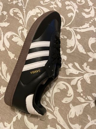 Zapatillas Adidas Samba originales en talla 38 1/3. Un clásico atemporal. - Diseño icónico con las tres franjas. - Parte superior de cuero y ante. - Suela de goma. - Detalle SAMBA en el lateral.