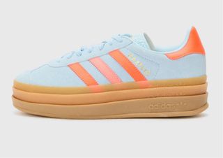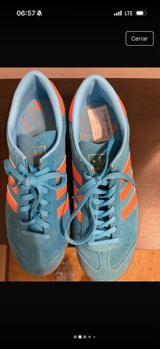 Adidas Gazelle originales, sin estrenar, con caja. Diseño llamativo en tonos celestes con detalles en naranja flúor y suela de goma color caramelo. Color precioso en persona. Las vendo porque es un regalo duplicado. • Modelo Gazelle • Tres rayas laterales • Suela de goma • Estado: nuevas, nunca usadas • Talla 38 Fotos reales del producto.