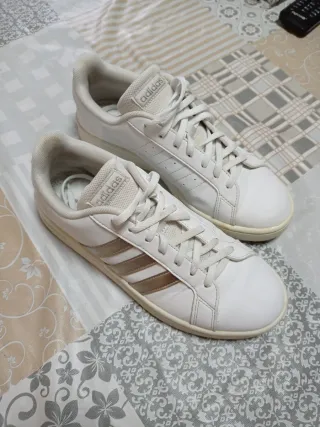 Zapatillas deportivas Adidas Court Tourino en color blanco con detalles en rojo. Talla 40. Totalmente originales (ver fotos). - Diseño clásico y versátil. - Parte superior de piel sintética. - Suela de goma para mayor durabilidad. - Envío rápido por Wallapop o entrega en mano