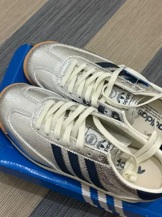 Zapatillas Adidas SL72 plateadas con detalles en azul marino. Nuevas con etiqueta y caja Talla 38 Compradas en Hacoo. Las vendo porque me quedan grandes.