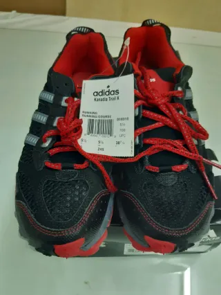 Zapatillas deportivas Adidas Kanadia Trail K. Unisex, talla 38 2/3. Nuevas sin estrenar y en su caja original. Diseño en color negro con detalles en rojo. Modelo para trail running.