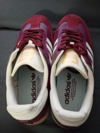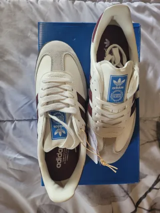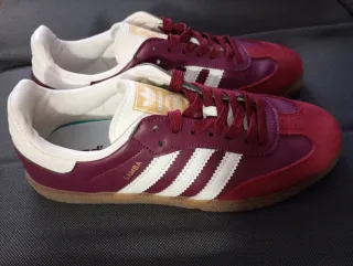 ✨Adidas Samba OG en un llamativo color burdeos. - Parte superior de ante y cuero. - Detalle de las tres rayas blancas. - Suela de goma. - Cierre de cordones. 👟Talla 38 EU. ✅Están Nuevas 🔥Modelo clásico y muy buscado. 📦Envío rápido y seguro