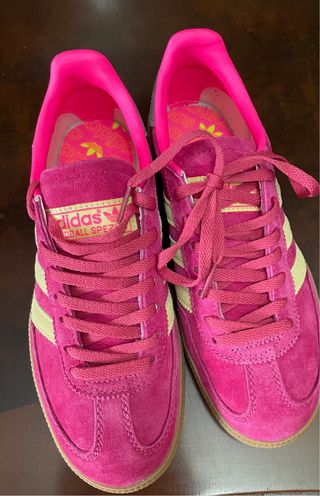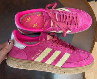 Zapatillas Adidas Spezial en llamativo color rosa con detalles en amarillo. - Diseño deportivo. - Cordones a juego. - Suela de goma.