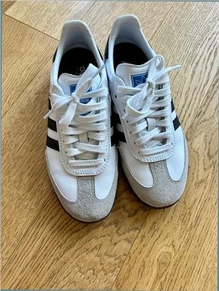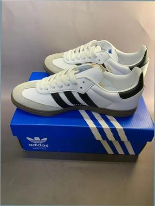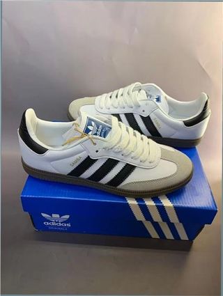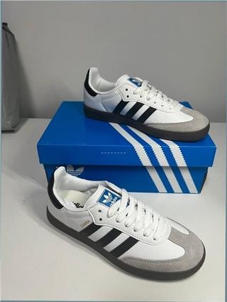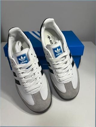 Zapatillas Adidas Samba OG en talla 39.5. Tienen dos usos. - Modelo: B75806 - Color: Blanco, negro y gris - Fabricadas en Camboya - Estilo: Originals