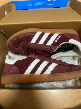 Zapatillas Adidas Spezial en color granate con detalles en blanco y suela de goma. Sin estrenar se me paso el tiempo de devolución. Tengo factura para demostrar. - Diseño clásico. - Material de ante.