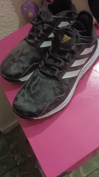 con la compra de 1 se regala la otra de regalo las zapatillas adidas negras talla 36(llevan desgaste pero se pueden aprovechar aun) Zapatillas deportivas Adidas con un diseño llamativo. - Combinación de colores vibrantes. - Cierre con cordones negros. - Detalle de las tres rayas blancas y azules.