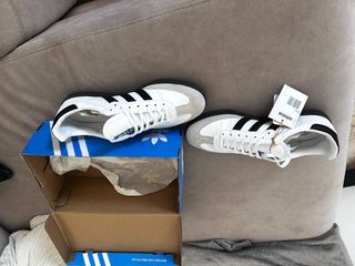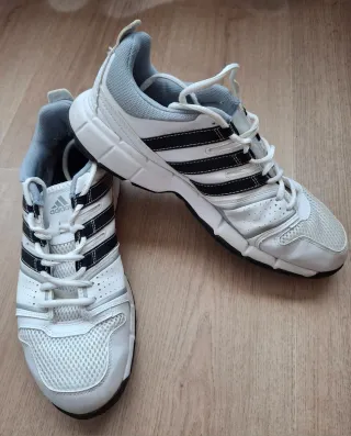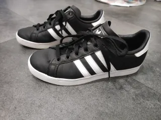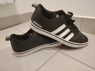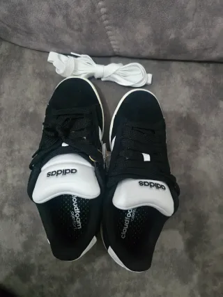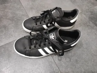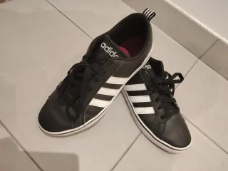 Zapatillas deportivas Adidas con un diseño clásico. - Combinación de colores negro y blanco. - Detalle de las tres rayas características de la marca. precio regateable.