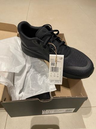 Zapatillas deportivas Adidas Runfalcon 5 en color negro. Perfectas para correr o para el día a día. - Diseño moderno y ligero. - Cierre con cordones. - Suela de goma ligera - Muy comodas. - Nuevas en su caja original.