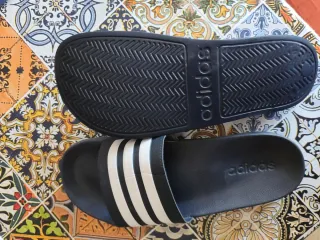 Zapatillas Adidas originales en talla 41. Combinan negro y beige con detalles únicos. - Diseño clásico con las tres rayas. - Suela de goma. - Materiales de calidad.