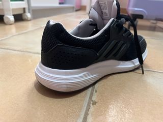 Zapatillas deportivas Adidas en color negro con detalles blancos. - Diseño moderno y deportivo. - Cierre con cordones. - Logo de Adidas en los laterales y la lengüeta. Sólo me las he puesto una vez. Tengo un juanete y me molesta cantidubi. Nuevas valen 49.99. Están perfectas. Maldito juanete. Y el trauma dice que no me opera.