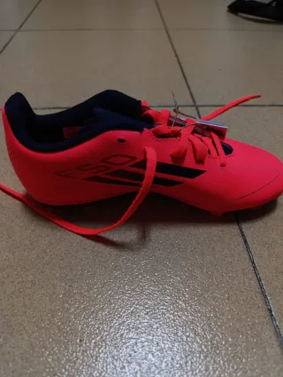 Zapatillas de tacos Adidas en llamativo color rojo con detalles en negro. Perfectas para la práctica deportiva. - Diseño deportivo. - Cierre con cordones. Son el número 35, pero tallan pequeñas. Más recomendado para 34.