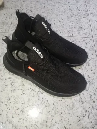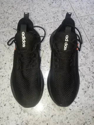Zapatillas deportivas Adidas en color negro.talla 44 son nuevas - Diseño moderno y cómodo. - Cierre con cordones. - Detalle naranja en el talón.
