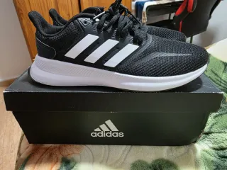 Zapatillas deportivas Adidas en color negro. La etiqueta pone talla 43 1/3 pero soy 42,5 realmente y me quedan bien.