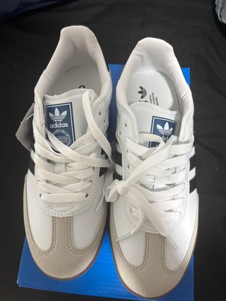 Zapatillas Adidas Samba en color blanco y negro. Sin estrenar, en su caja! Se venden por falta de uso, equivocación de talla .