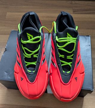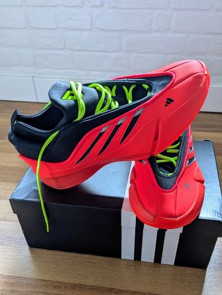 Zapatillas Adidas Dame 9, nuevas en su caja. Son de color naranja y negro, con detalles en verde lima. - Diseño llamativo y moderno. - Cómodas y ligeras.