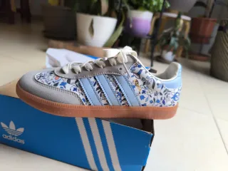 Zapatillas Adidas de niña, color azul y rosa como nuevas, material cuero, sólo tiene unos roces como enseño en la foto. Poco uso. Talla 36. - Material exterior de cuero. - Cierre de velcro. - Detalle de logo en la lengüeta.
