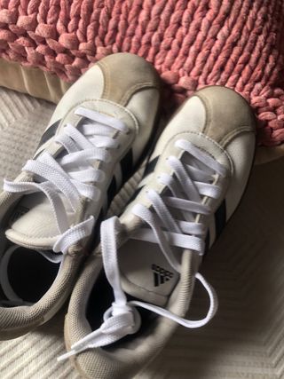 Vendo zapatillas Adidas para niños. Están en buen estado y son muy cómodas. - Ideales para el día a día. - Diseño clásico y elegante. - Talla (especificar talla).