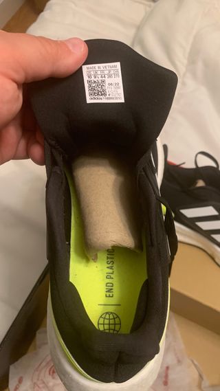 Zapatillas deportivas Adidas Pureboost GO talla 45 1/3 y US11. Les he dado bastante uso sobre todo para pasear y gimnasio, tienen signos evidentes de desgaste tanto la suela como la tela pero no son muy acusados, y la zapatilla está en buen estado para seguir dándole uso durante bastante tiempo. No llevan plantillas, uso plantilla personalizada y las debí de tirar (una nueva son 2€ en cualquier supermercado, o bien reutilizando otra).