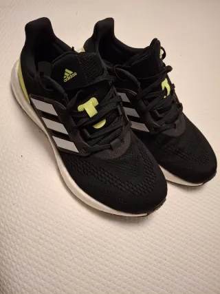 Vendo un par de zapatillas Adidas Pureboost. Están prácticamente nuevas y listas para usar. - Modelo Pureboost de Adidas. - Diseño deportivo y elegante. - Color negro con detalles amarillos.