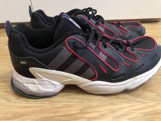 Zapatillas Adidas. Color negro con detalles en gris y rojo/fucsia. Muy poco uso por lo que están como nuevas. Número: 44