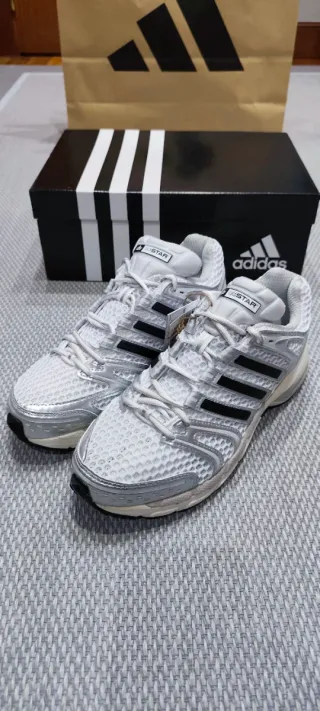 Zapatillas running unisex Adidas Adistar Control 5 En color plata y blanco. Talla 41 1/3 Nuevas con etiquetas y en su caja original Envío rápido Precio en la Web 110€ - Diseño deportivo. - Detalles de las tres rayas de Adidas.