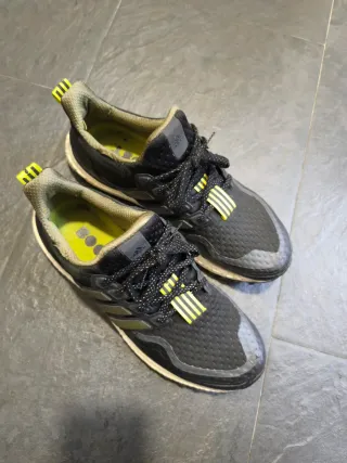 Zapatillas deportivas Adidas Ultraboost PB20. - Talla 44 - Diseño en negro con detalles en verde lima. - Suela Continental para máximo agarre en asfalto y senderos. - Parte superior de malla transpirable. - Espuma Boost en su mediasuela que garantiza una respuesta superior en cada pisada junto a la comodidad. - Un modelo dirigido a corredores neutros que buscan completar con éxito las tiradas más exigentes y moverse a ritmos muy vivos. - Poco uso y muy cuidadas. - Entrego en su propia caja.