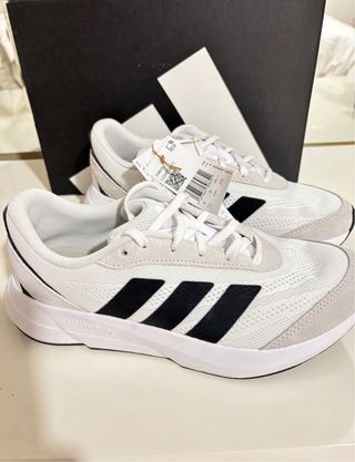 Zapatillas deportivas Adidas, ideales para running. Están sin estrenar, las compramos para un regalo y se nos paso periodo de devolución - Diseño moderno en blanco con detalles grises. - Suela blanca.