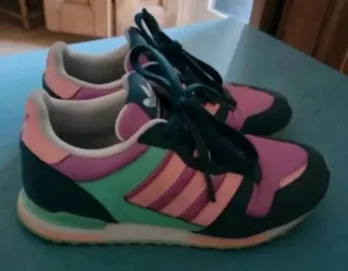 Zapatillas deportivas Adidas inspirado en el estilo retro running de los años 80. Talla 33. Muy originales. Materiales: La parte superior combina gamuza, malla y cuero.