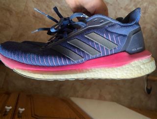 Zapatilla de running Adidas Adistar 2 en color rosa. Prácticamente nuevas tal y como se puede observar en las fotos ( foto suela incluida). Se venden debido a lesiones deportivas, se han podido utilizar 3 veces contadas.