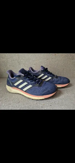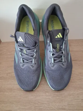 Zapatillas Adidas Supernova, con suela continental y sistema de amortiguacion. Usadas y con pequeño desgaste en el talón. Todavía tienen usos, ideal para quienes quieran iniciarse en el running.