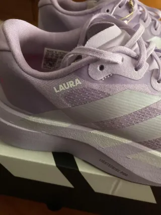 Zapatillas de running Adidas en tonos rosas. Diseñadas para ofrecer comodidad y rendimiento. - Detalle LAURA bordado en el lateral. - Tecnología LIGHTSTRIKE PRO en la suela. - Fabricadas en Vietnam.