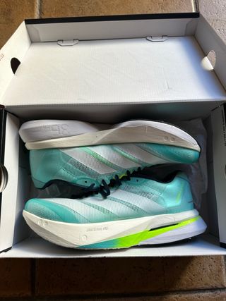 Zapatillas de running Adidas Adizero BOSTON 13. - Diseño en color verde y turquesa. - Tecnología Lightstrike Pro en la mediasuela. - Usadas 6kms para probar en pista. Me quedan pequeñas