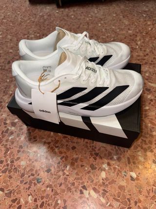 Zapatillas running Adidas para hombre. Totalmente nuevas a estrenar. Era un regalo de navidad, pero la talla no me valía. Suela continental y placa de varillas de fibra de vidrio, similar a las de carbono.