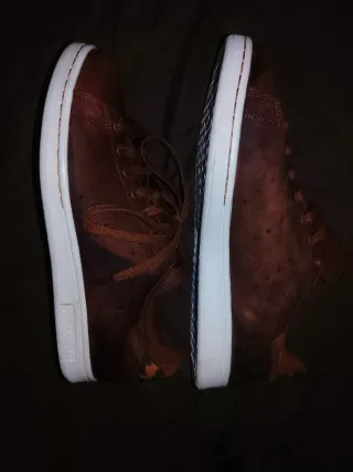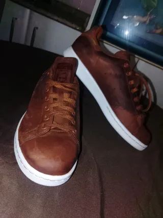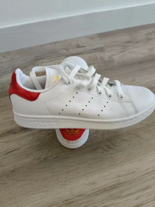 Tienen mucho uso y muchos años. Los cordones están bastante desgastados. Las compré a 80€. Zapatillas Adidas Stan Smith con detalles en rojo y blanco. Un clásico reinventado con un toque moderno. - Diseño icónico. - Suela de plataforma.