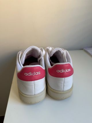 Zapatillas deportivas Adidas Stan Smith en color blanco con detalles en rosa. Estan más bonitas de lo que se ven en fotos, el unico detalle es que la suela se pusieron amarillas al lavarlas pero la parte blanca está intacta