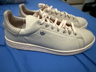 Zapatillas Adidas Stan Smith en talla 45. Un clásico para el día a día. - Diseño en color gris y azul. - Cierre con cordones. Estado: plantillas recién cambiadas. POR fuera está en un excelente estado salvo en la zapatilla izquierda trasera el logo de “Stan Smith”. Por dentro se acaban de cambiar las plantillas. Tiene algún roto de la tela pero no afecta en nada. Además no se ve al llevarlas puesta. Compradas por 65€ en el Corte Inglés.