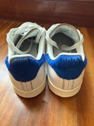 Zapatillas Adidas Stan Smith en talla 37. Un clásico reinventado con un toque moderno. - Diseño icónico de Adidas. - Detalle azul en el talón.