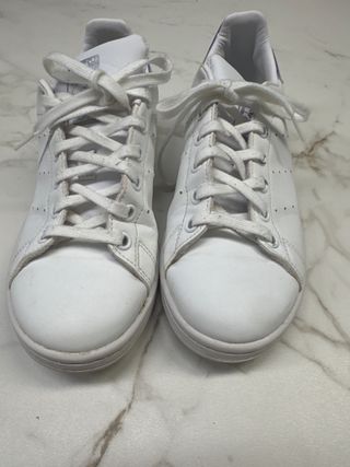 Vendo un par de zapatillas Adidas Stan Smith, talla 37.5. Son de color blanco y están en buen estado. - Tienen un diseño clásico y elegante. - Ideales para el uso diario. Tiene sobada la lengüeta y plantilla