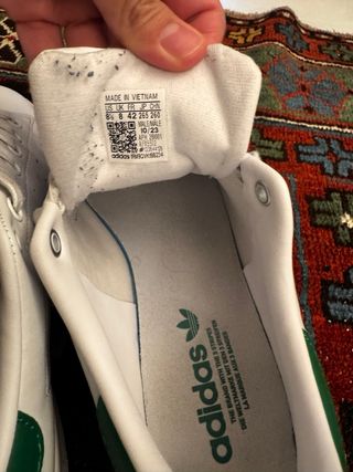 Zapatillas Adidas Stan Smith Detalle del logo Stan Smith en el talón y la lengüeta Sin la caja original