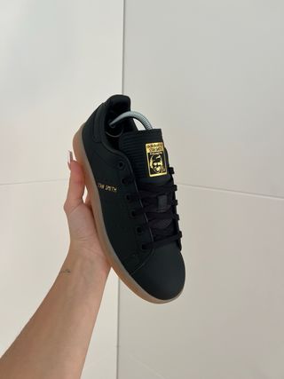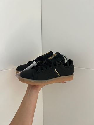 Zapatillas Adidas Stan Smith J en color negro con detalles dorados. Talla 36,5 EUR / US 4.5Y