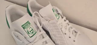 Vendo zapatillas deportivas de la marca Adidas modelo Stan Smith en color blanco con el talón en verde. Un clásico atemporal. Aunque se encuentran usadas, pueden tener una segunda vida. El estado se puede apreciar en las fotos. No conservo su caja. - Diseño icónico. - Detalle verde en el talón.