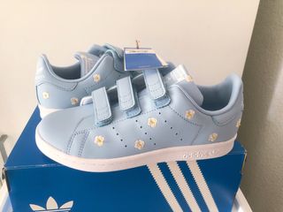 Por motivos personales, no ofrezco la opción de probarse los zapatos.🥰 Zapatillas Adidas Stan Smith en color azul claro con detalles de pequeñas flores bordadas. Son totalmente nuevas, con etiquetas y sin estrenar. El precio original era 60€, y yo lo compré por 42 € .Talla 34. La suela exterior mide aproximadamente 23,5 cm y la longitud interior es de unos 22 cm. Cierre con tiras de velcro para un ajuste cómodo y fácil. Modelo ligero, resistente y muy fácil de combinar. Incluye caja original.