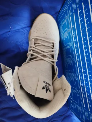 Zapatillas Adidas Tubular de color beige. Prácticamente no usadas en 4 años. No tiene signos de uso. Bastante únicas, nunca se las he visto a nadie. Precio de compra 180€. No, no tengo factura de hace 4 años.