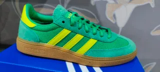 Zapatillas Adidas Handball Spezial en llamativos tonos verdes y amarillos. Un clásico para tu colección. Talla 36 2/3 Nuevas con etiquetas y en su caja original 100% originales - Diseño icónico de las Handball Spezial. - Combinación de colores vibrante. - Suela de goma marrón. - Talla 36.5.