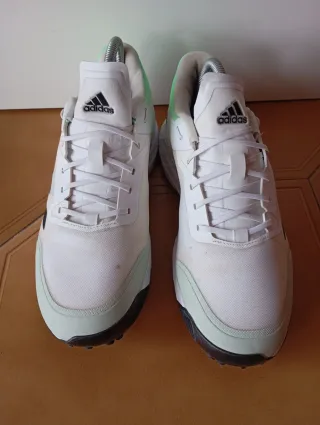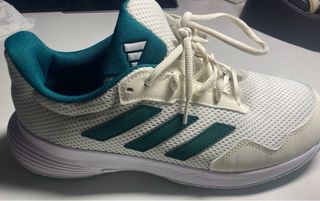 Zapatillas deportivas Adidas en color blanco con detalles en verde. - Diseño deportivo. - Cierre con cordones. - Suela de goma. Se vende sin casi haberlas usado, ya que me van más grande de lo que esperaba.