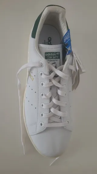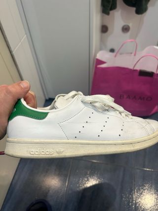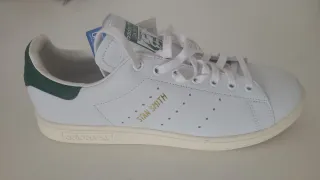 Zapatillas deportivas clásicas Stan Smith. No se han usado nunca. Talla 36 2/3 - Diseño icónico en blanco con detalles verdes. - Cierre con cordones. - Suela de goma.