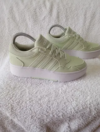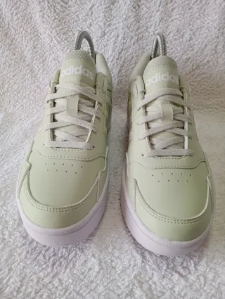 Zapatillas Adidas Hoops 3.0 en color verde. Diseño moderno y cómodo. Talla 38 2/3 - Parte superior de piel sintética. - Suela de goma. - Cierre de cordones.