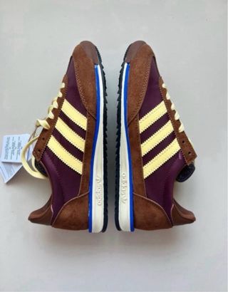 Zapatillas deportivas Adidas SL 72 en tonos marrón y morado. Un clásico con un diseño retro. - Parte superior de ante y nailon. - Detalle de las tres rayas en color amarillo. - Suela de goma con buen agarre. - Versión china
